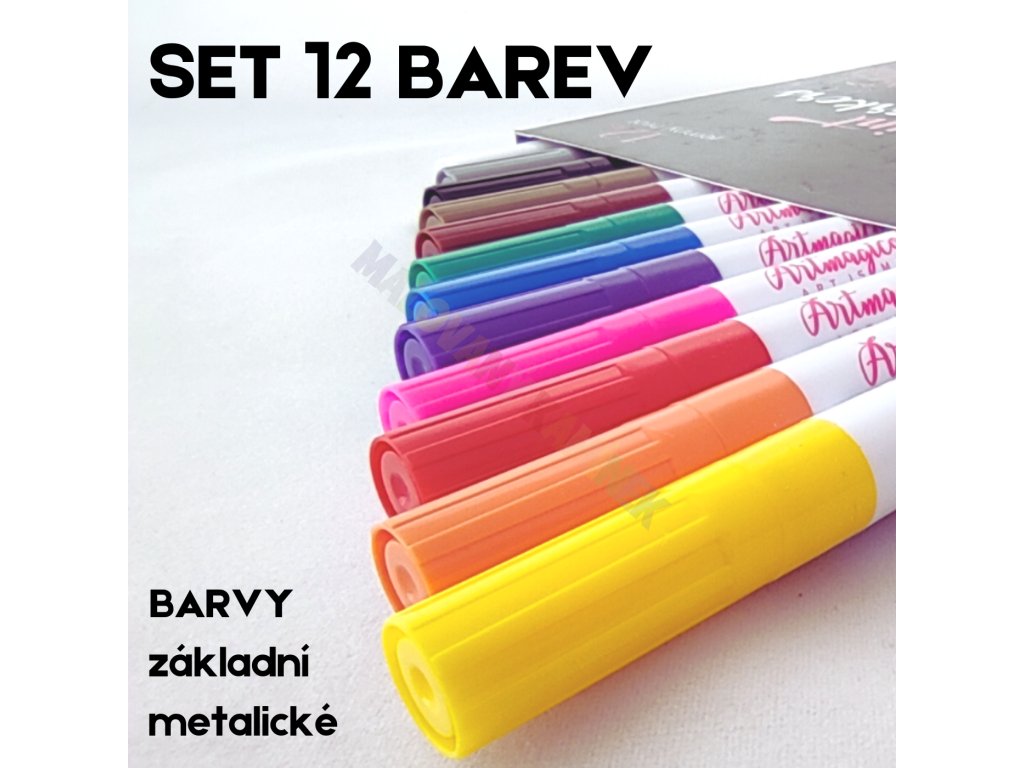 Akrylové fixy zn. Artmagico s jemným hrotem o šíři cca 1 mm a inkoustem prémiové kvality nabízíme v sadě 12 ks. Skvělou paletu barev, nejkvalitnější hrot z porézních vláken a dokonale krycí akrylový inkoust v lesklých barvách si oblíbí každý umělec, ať už začínající nebo profesionální!