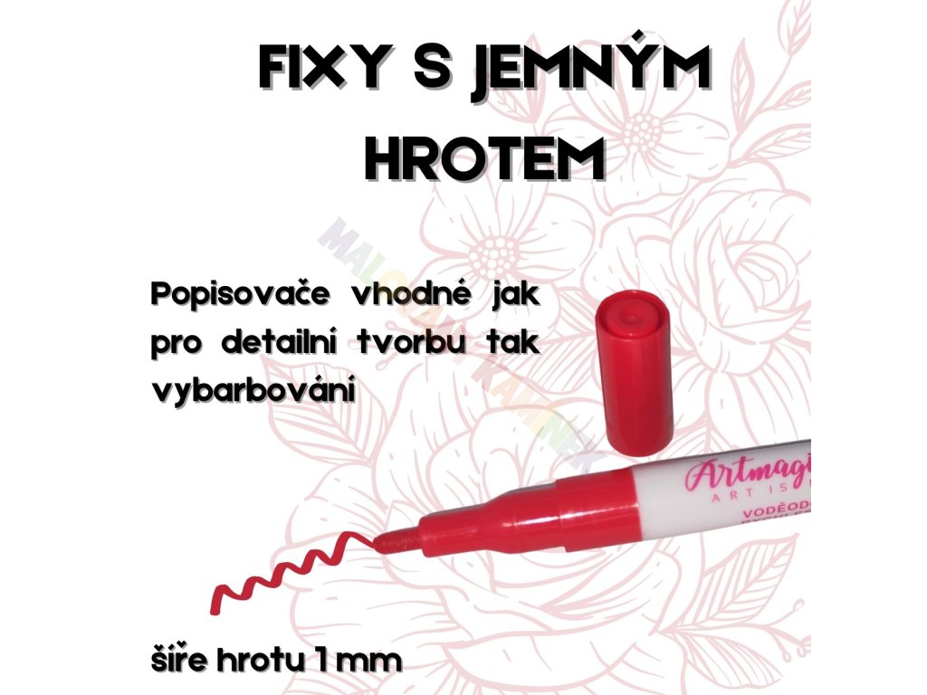 Artmagico nabízí moderní akrylové popisovače, jež jsou plněny kvalitním italským inkoustem a jejichž hroty jsou vyrobeny v Japonsku a jsou zárukou kvality a dlouhé životnosti. Barva inkoustu má vysokou krycí schopnost, je voděodolná a světlostálá, nedochází k jejímu blednutí, barvy zůstávají jasné a je možné je vzájemně míchat a tvořit tak další barevné odstíny. Díky konzistenci inkoustu je možné stínovat také za pomocí vlhkého štětce a dát tak malování s fixy nový umělecký rozměr.