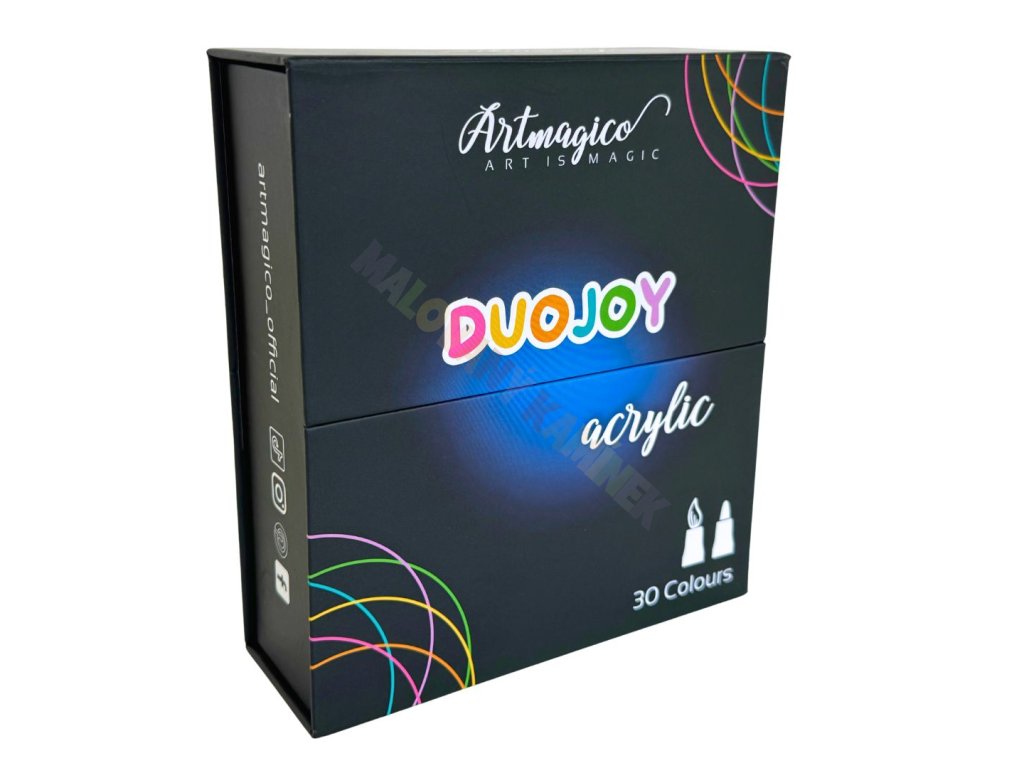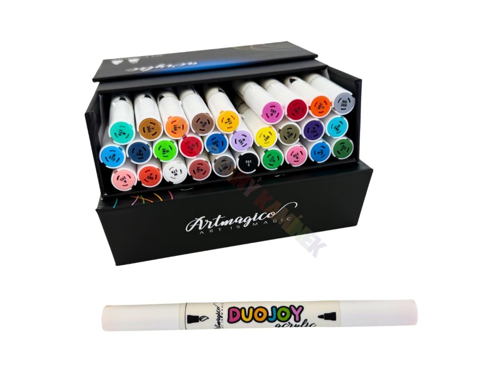 Hledáte všestranný nástroj, který zvládne detailní linky, plynulé tahy i malbu na sklo? Sada Artmagico Duojoy Acrylic nabízí 30 pečlivě vybraných odstínů akrylových barev ve fixech se dvěma hroty – porézní a brushpen.