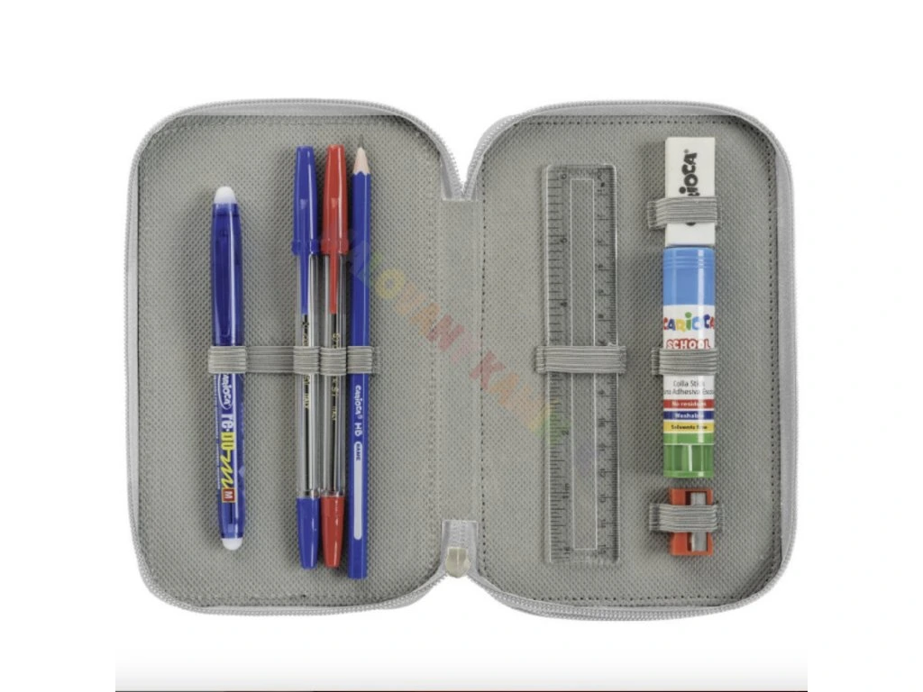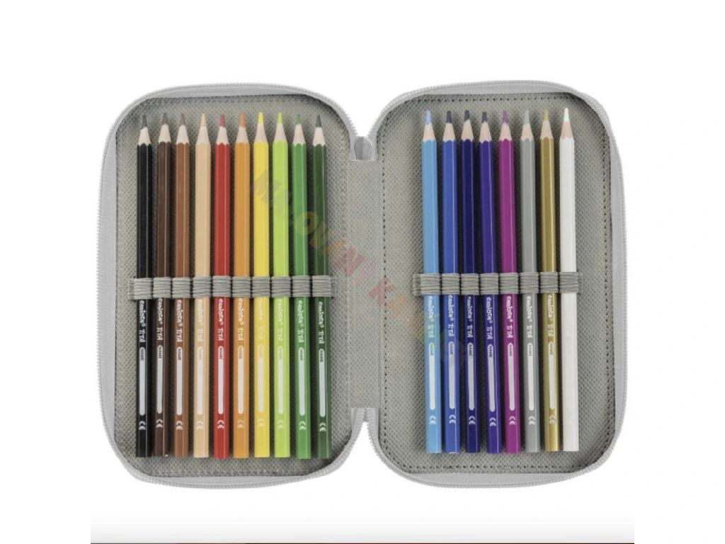 Penál má tři oddělené přihrádky na zip, což umožňuje efektivní organizaci různých psacích potřeb. Uvnitř najdete 18 fixů, 18 barevných pastelek, grafitovou tužku HB, pravítko, gumu, ořezávátko, lepidlo, dvě kuličková pera a jedno gumovací pero. To vše je vyrobeno z netoxických a bezpečných materiálů, což zaručuje bezpečné používání pro děti i dospělé.