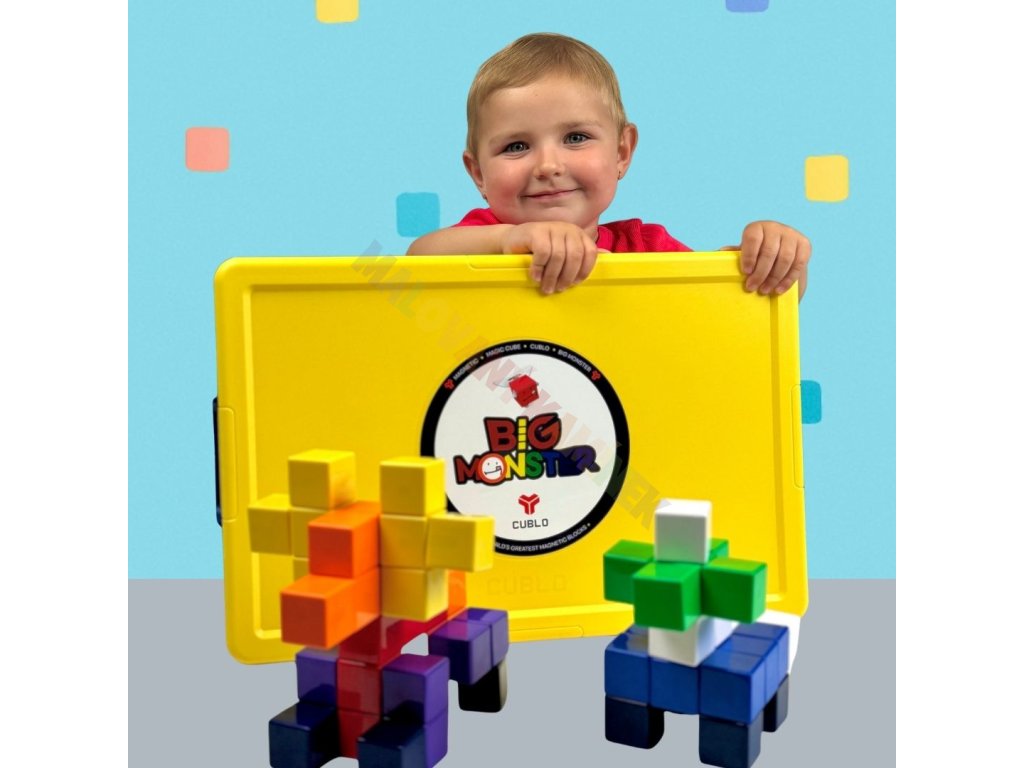 CUBLO Big Monster je velká stavebnice pro děti od 1 roku s bezpečnými zaoblenými dílky, ze kterých si postaví zvířátka, stavby i vlastní příšerky – vše uložené v pevném plastovém boxu.