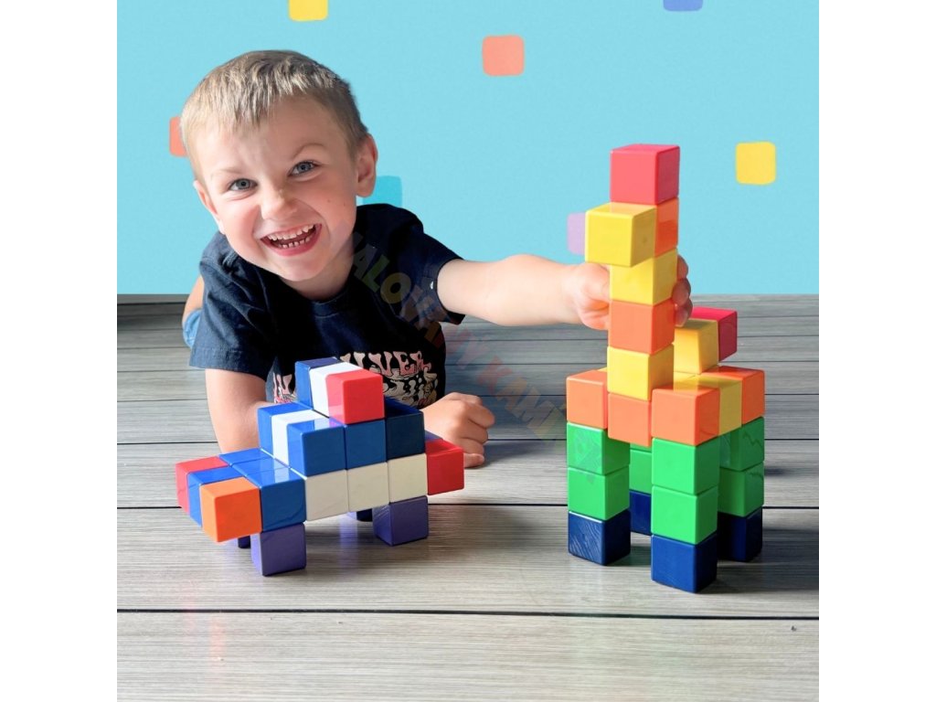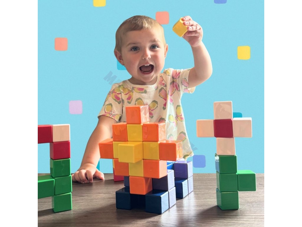 Magic Cube nabízí různé varianty setů, které dětem umožní postavit hrady, zvířátka, domky i vozítka. Magnety zajišťují stabilní spojení, zatímco lehká konstrukce a praktická velikost kostek usnadňují manipulaci i skladování.