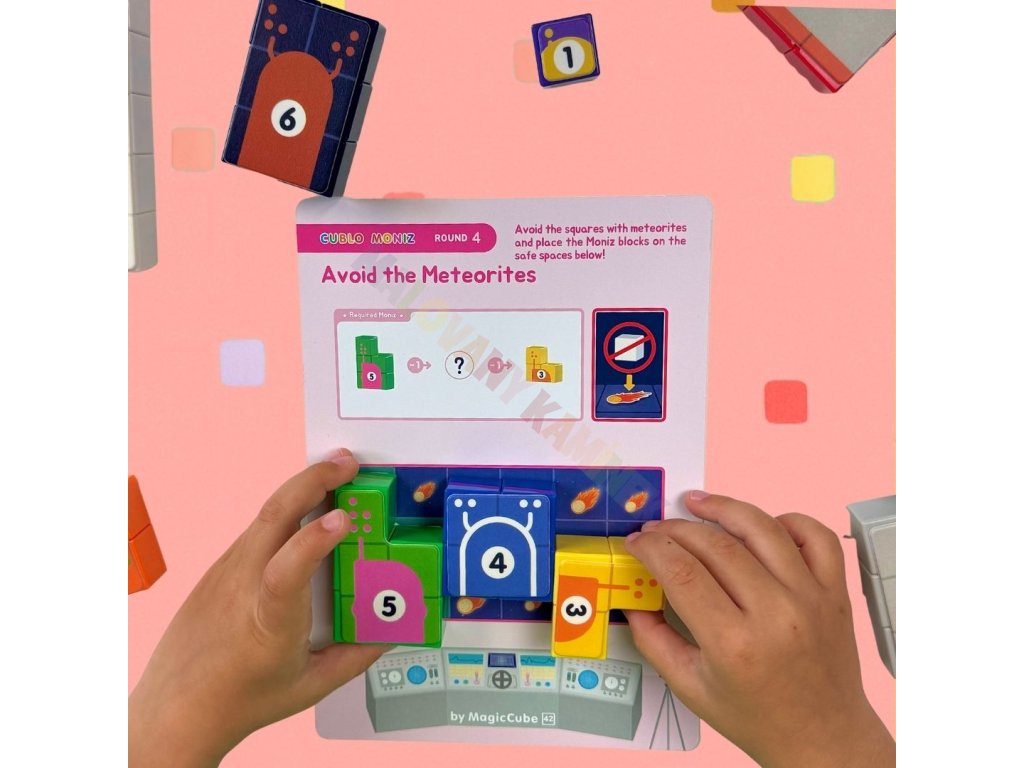 Stavebnice MONIZ posouvá značku Cublo do oblasti moderního vzdělávání. Obsahuje speciální měkké samolepky pro tvorbu postaviček, číslic nebo logických prvků. Děti se tak učí počítat, logicky uvažovat, kombinovat – a to vše během hraní.