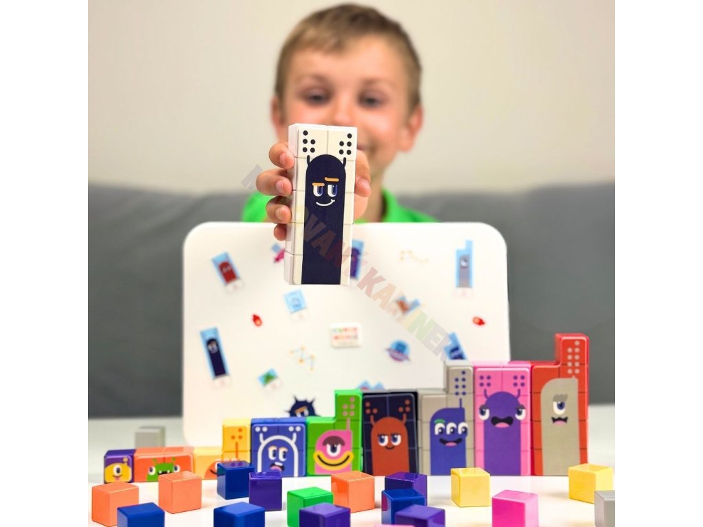Little Monster přidává ke klasickým dílům opakovaně použitelné samolepky – děti si tak mohou z kostek vytvořit postavičky nebo učit barvy, tvary a hlavně počítání a třídění. Perfektní nástroj pro hravý vstup do světa čísel.