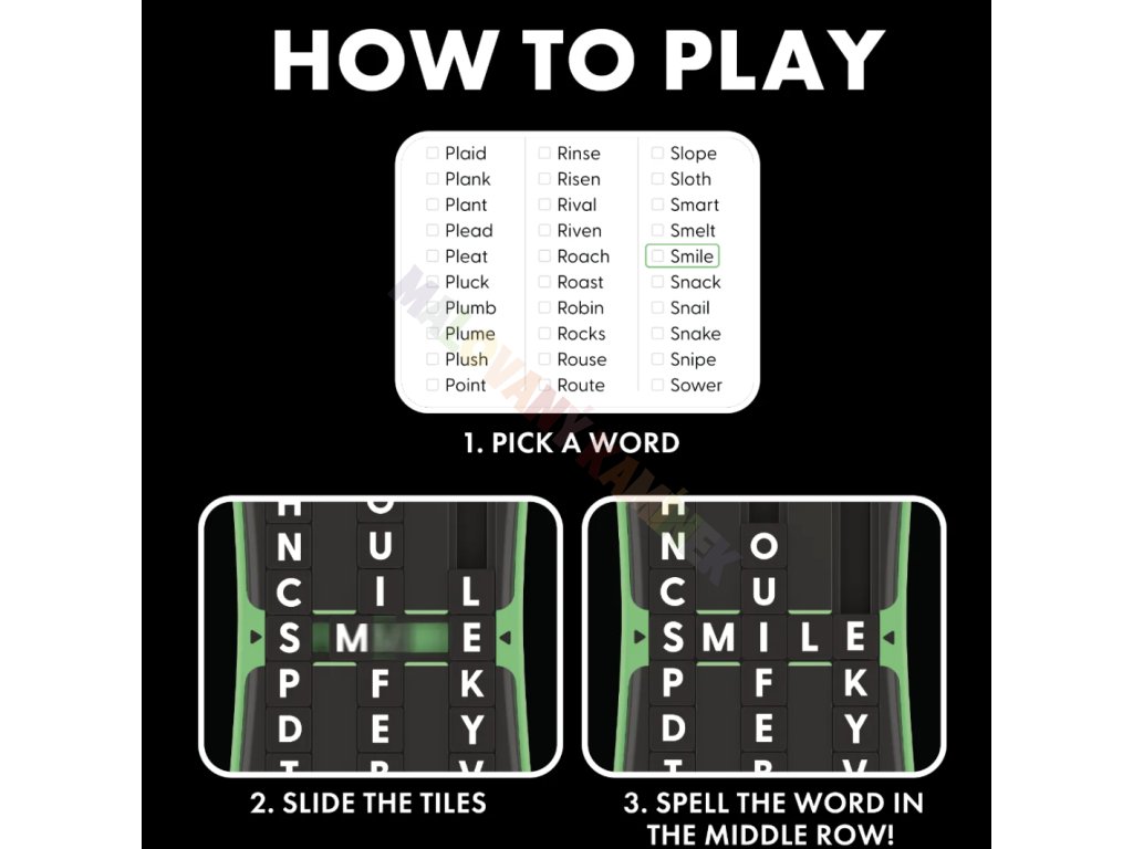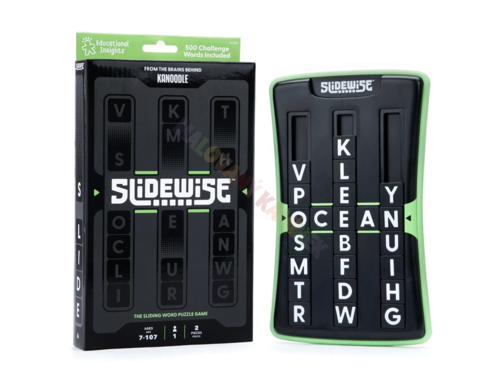 SlideWise od Educational Insights je chytrá a návyková slovní hra, ve které hráči posouvají písmenkové dlaždice tak, aby složili slova podle zadaných úkolů. Každá karta obsahuje konkrétní výzvu – dítě nebo hráč musí přemýšlet, jak přesunout jednotlivé dílky tak, aby vytvořil správné slovo nebo splnil podmínky zadání.