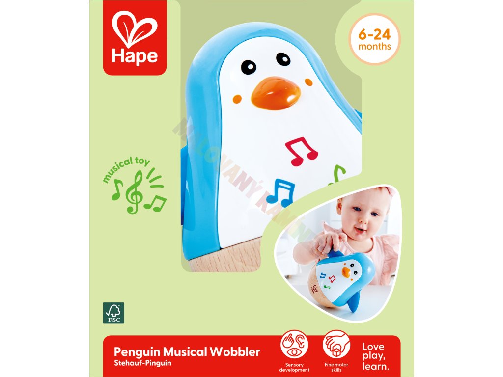 Tento roztomilý balanční tučňák od HAPE je perfektní první hračka pro vaše děťátko. Jeho zaoblený tvar zajišťuje bezpečné kývání, které stimuluje rozvoj rovnováhy a motorických dovedností. Dítě se ho může snažit postrčit, houpnout nebo obejmout – tučňák se vždy vrátí zpět a jemně zacinká.