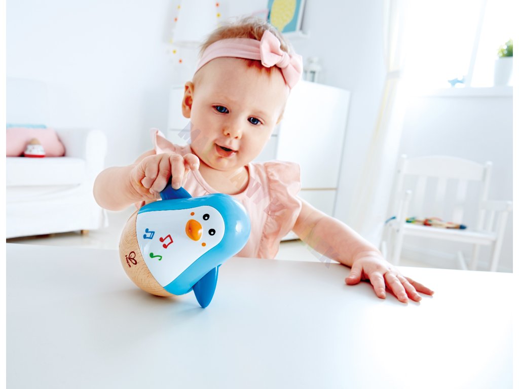 - Rozvoj rovnováhy a koordinace: Dítě sleduje, jak se tučňák houpe, a snaží se ho pohybovat samo.