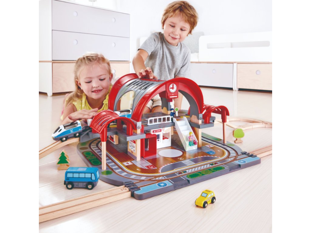 Grand City Station je jedna z nejpropracovanějších vláčkodráh od Hape, která dětem přináší autentický zážitek z rušného městského vlakového nádraží. Stanice je navržena ve dvou podlažích a nabízí mnoho funkcí a detailů, které otevírají nekonečné možnosti příběhové hry.
