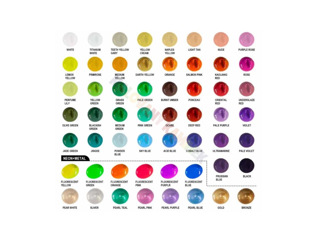 - Počet barev: 56 různých kvašových odstínů (každá 30 g)