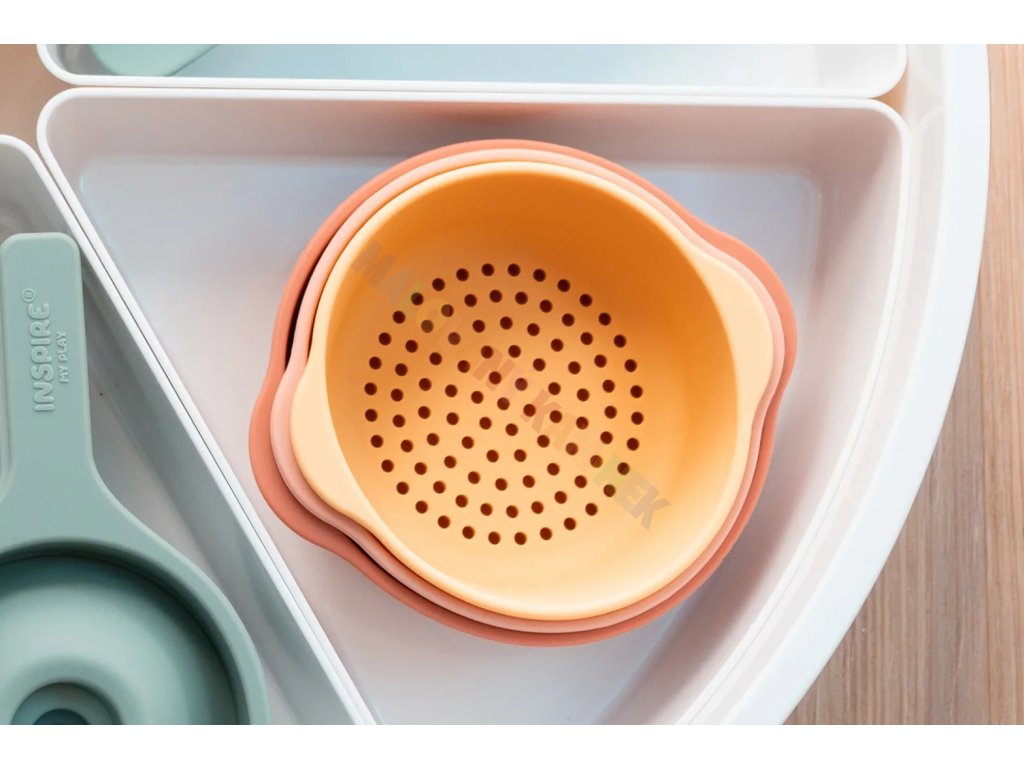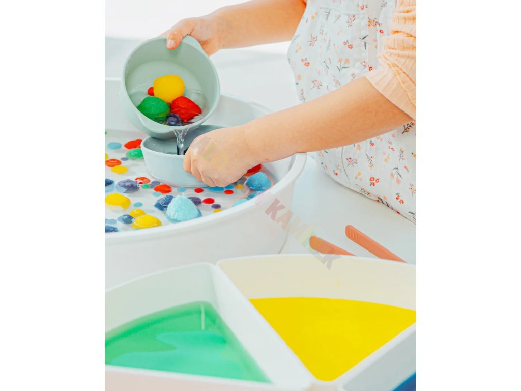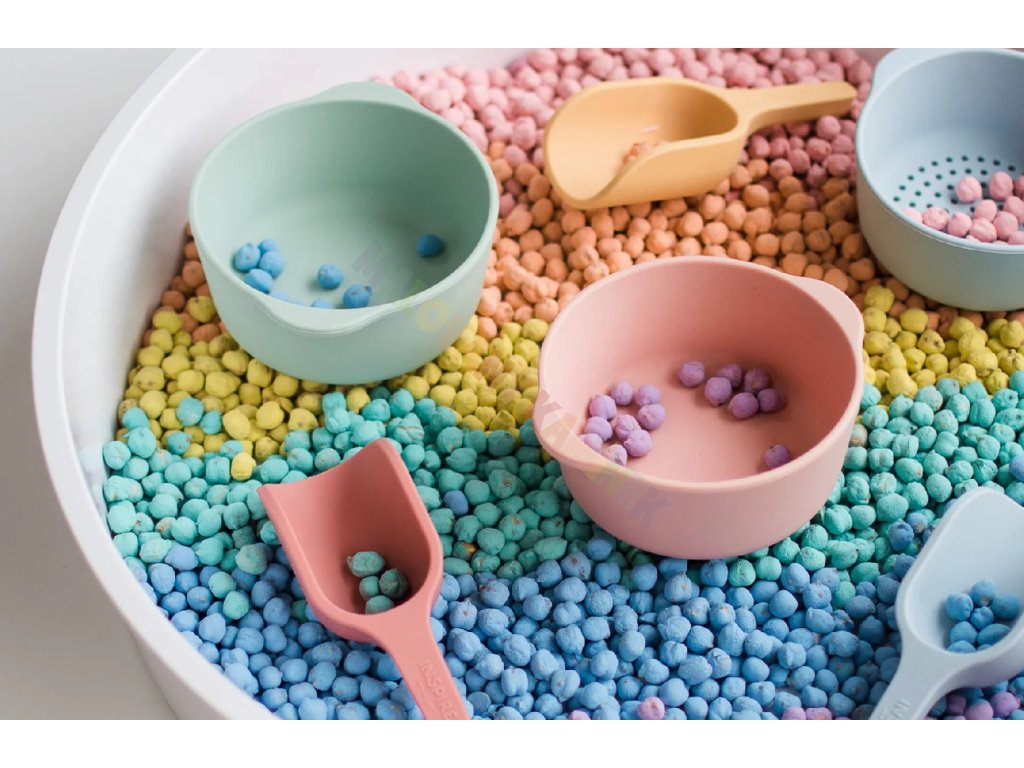 Položte je vedle sestavy PlayTRAY jako výzvu pro vaše dítě, aby je použilo, jak se mu zlíbí, nebo je naplňte smyslovými pochoutkami, které může míchat, vyklápět nebo dokonce ochutnávat! Existuje tolik způsobů, jak tyto misky použít.