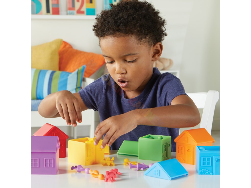 Tato sada přináší dětem možnost učit se o sobě, své rodině a okolním světě pomocí jednoduchých aktivit se figurkami a domečky. Děti figurky třídí, počítají, přiřazují k domečkům a zároveň si vytvářejí vlastní příběhy ze sousedství.