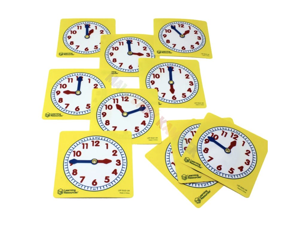 - Sada 10 výukových ciferníků s pohyblivými ručičkami