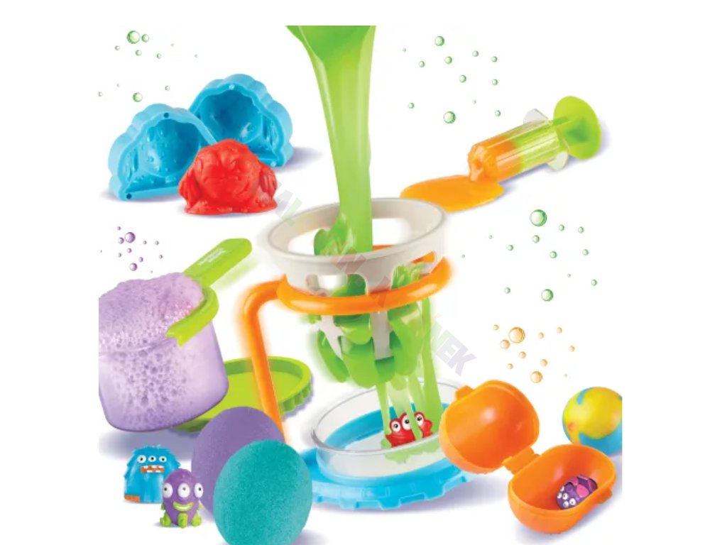 Součástí sady je stanice na výrobu slizu, formy pro tvorbu postaviček a barevná brožura s experimenty, která učí děti základním vědeckým principům hravou formou.