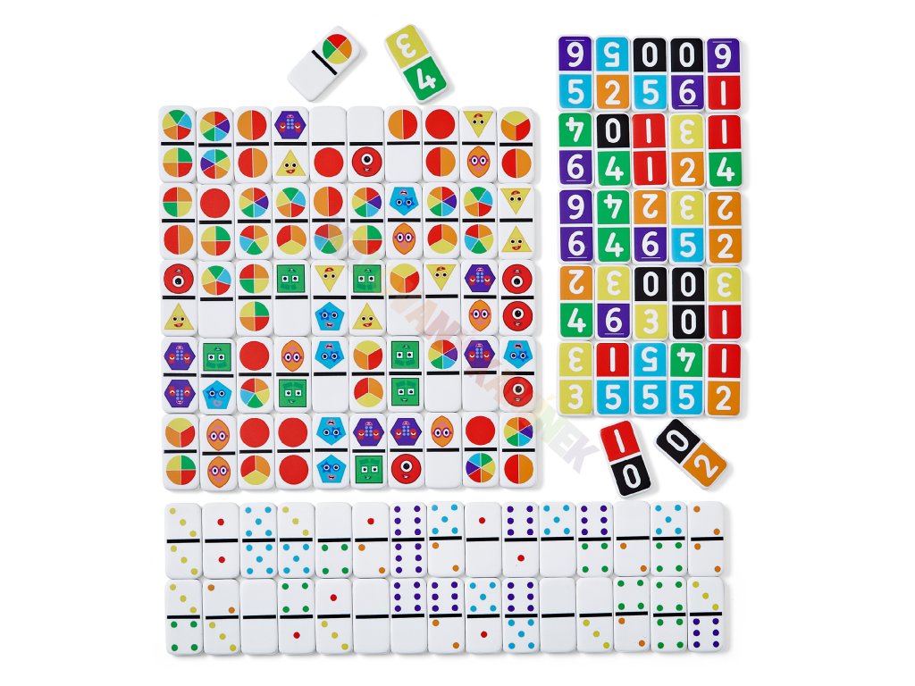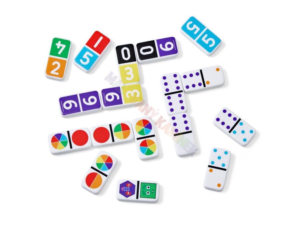 Klasické domino, párování, řetězce, porovnávání a jednoduché sčítání.