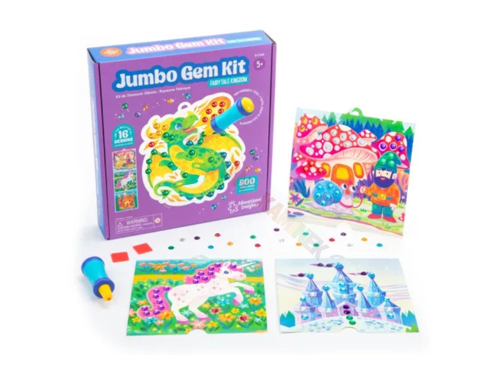 S touto sadou mohou děti vytvářet barevné, texturované obrázky z třpytivých kamínků. Jednoduše pomocí speciálního nástroje umístí kamínky na vyznačená místa na předlohách a sledují, jak se obrázek mění v nádherné 3D umělecké dílo.