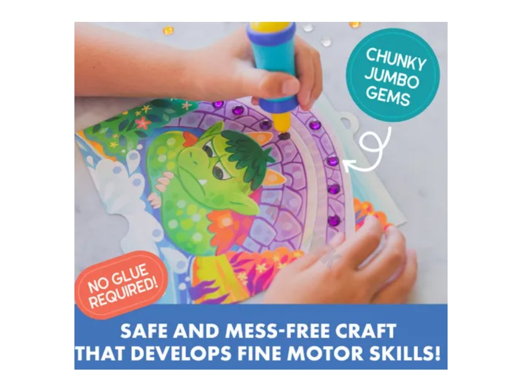 S touto sadou mohou děti vytvářet barevné, texturované obrázky z třpytivých kamínků. Jednoduše pomocí speciálního nástroje umístí kamínky na vyznačená místa na předlohách a sledují, jak se obrázek mění v nádherné 3D umělecké dílo.