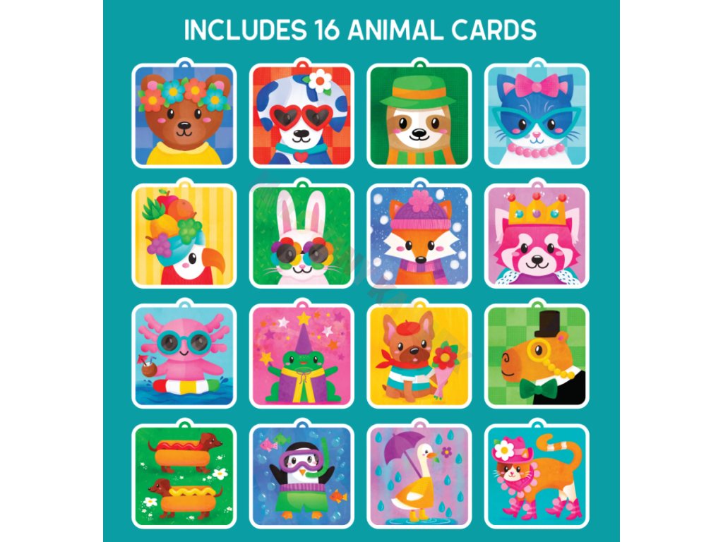- Obsah balení: Pom-pom nástroj, 16 designových karet se zvířátky, 1000 barevných pom-pomů