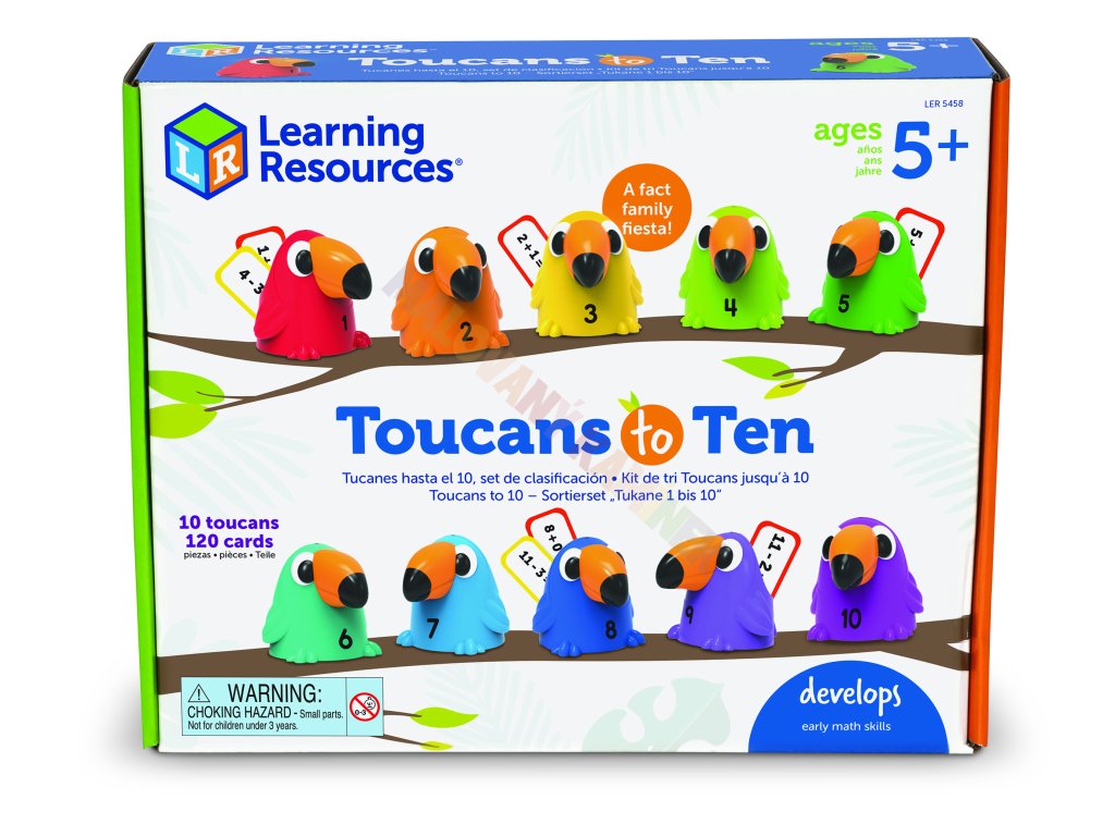 Tato interaktivní matematická hra učí děti sčítání a odčítání hravou formou. Po vyřešení příkladu dítě umístí kartu do tukaního stojanu se správným odpovídajícím číslem. Takto rozvíjí porozumění „fact families“ – skupinám matematických faktů se společnými čísly. Sada obsahuje 10 veselých tukanů a 120 opakujících se cvičení pro dlouhodobé učení.