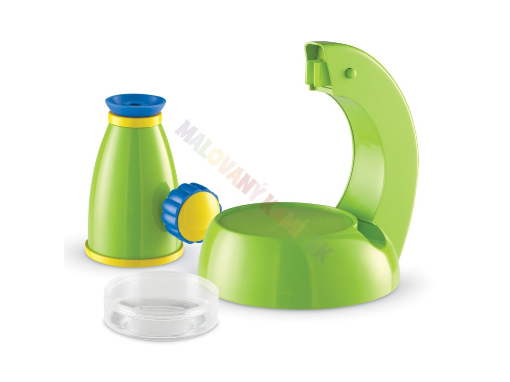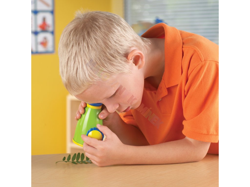 S tímto jednoduchým mikroskopem se děti seznámí se základy pozorování a vědeckého bádání. 20násobné zvětšení umožňuje sledovat detaily různých přírodních objektů – listů, kamínků nebo hmyzu. Velký zaostřovací knoflík je uzpůsoben malým dětským rukám, aby byla manipulace snadná a bezpečná. Odnímatelný průzor lze používat samostatně, takže je mikroskop ideální i na výlety nebo do přírody.