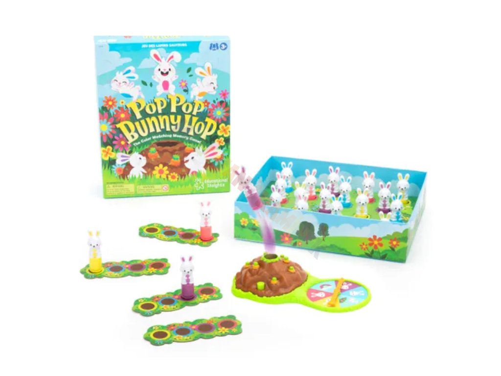 Hra Pop Pop Bunny Hop je navržena pro malé děti, které se učí základní barvy a čísla. Princip hry je jednoduchý a poutavý – králíček je umístěn mezi mrkvičky a po stisknutí vyskočí. Děti se snaží nasbírat mrkvičky podle barvy nebo čísla určeného herním plánem.