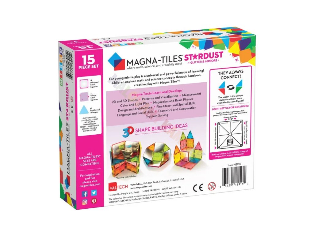 Sada Magna-Tiles Stardust je oblíbená mezi rodiči i pedagogy díky své schopnosti rozvíjet dětskou fantazii a přirozeně podněcovat zájem o fyziku a tvary. Dílky obsahují třpytky a zrcadla, která lákají ke zkoumání světla, barev a odrazů. Děti si při stavění uvědomují principy rovnováhy, symetrie i gravitace – zábavnou formou, bez nátlaku.