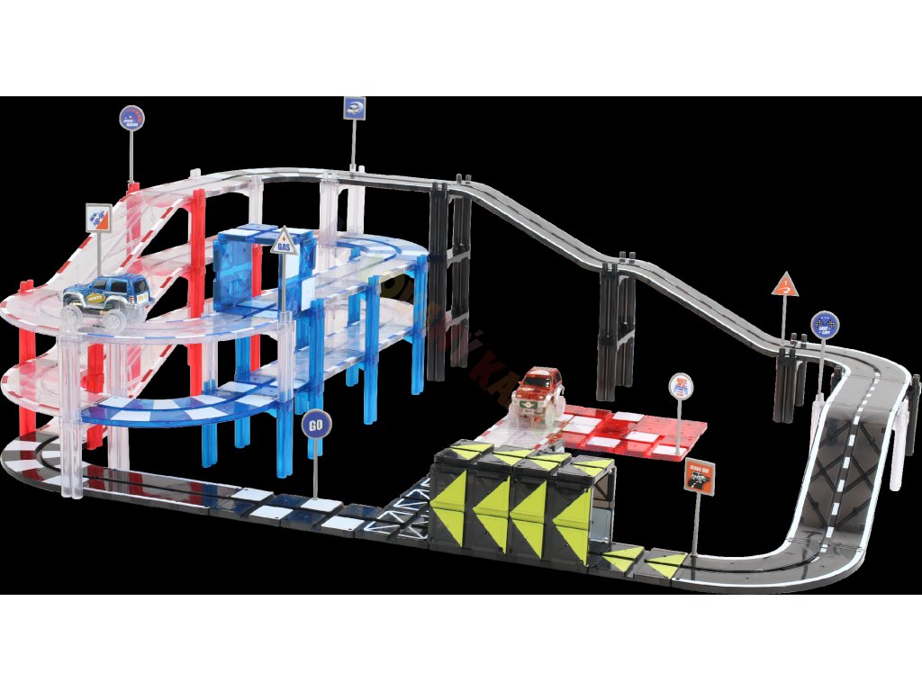 Postavte si vlastní závodní dráhu plnou zatáček, mostů a přímých úseků! Tato magnetická sada s elektromobily nabízí dětem možnost vytvářet různé typy tratí a zkoumat principy pohybu, rychlosti a gravitace. Díky snadnému magnetickému propojení zvládnou stavbu i mladší děti – bez potřeby nářadí či složitých instrukcí.