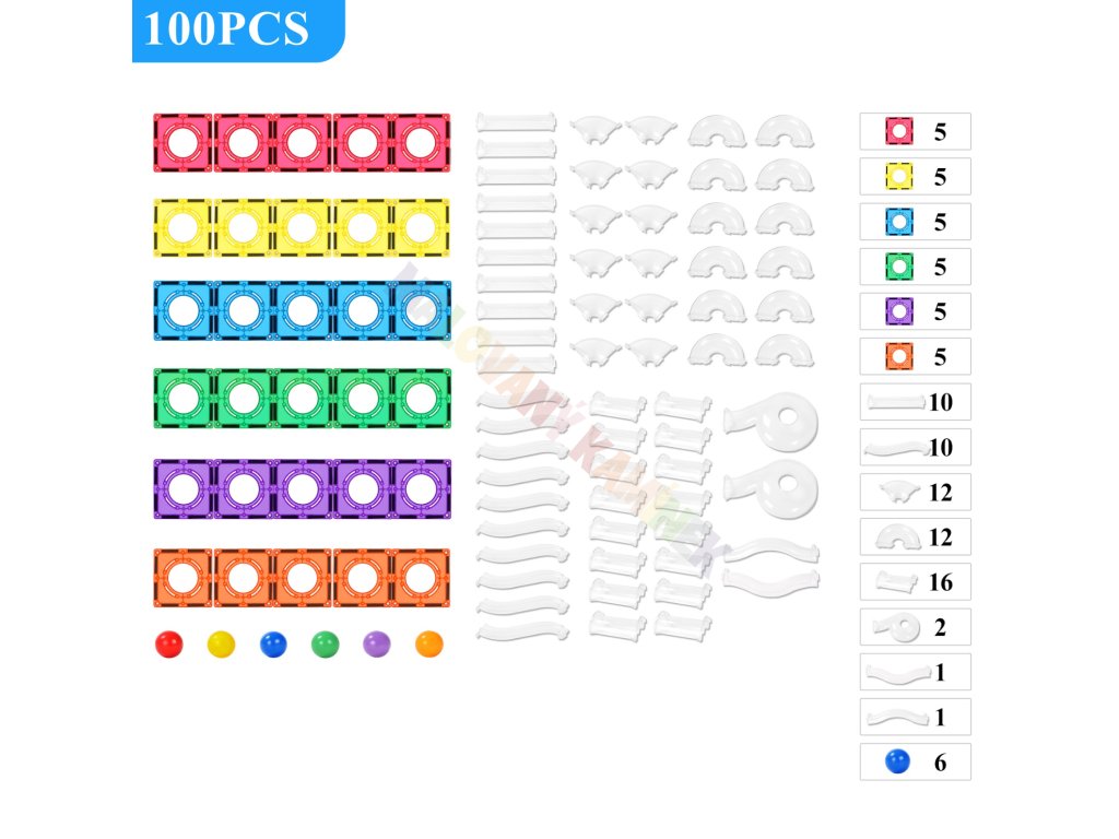 MNTL - Magnetická stavebnice Marble run toy - 100 ks - transparentní