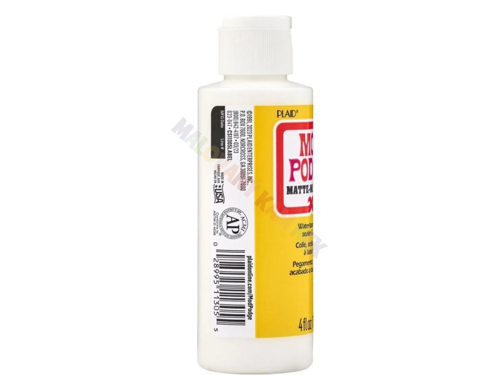 Oblíbené 3v1 lepidlo pro kreativní duše. Mod Podge Matte vytváří hladký, čirý a matný povrch, ideální pro decoupage, papírové projekty a ruční práce. Rychle schne a je bezpečné pro děti i dospělé. S tímto univerzálním lepidlem vdechnete život každému nápadu.