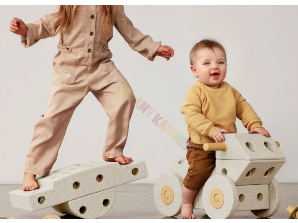 Tato velká stavebnice nabízí více než 25 možností stavění – od balančních her po interaktivní vozítka. Děti si mohou každý den zvolit, co si postaví: houpačku, stoleček, odrážedlo nebo kuchyňku. Fantazii se meze nekladou!