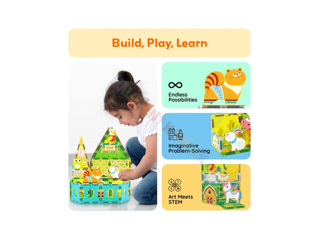 Objevte kouzlo venkova s podzimní atmosférou! Sada Farma podzim spojuje potištěné magnetické dílky s motivy přírody a 8 roztomilých zvířecích figurek. Děti si mohou postavit vlastní farmu, vytvořit nové příběhy a objevovat svět fantazie prostřednictvím hry, která rozvíjí jemnou motoriku i představivost.