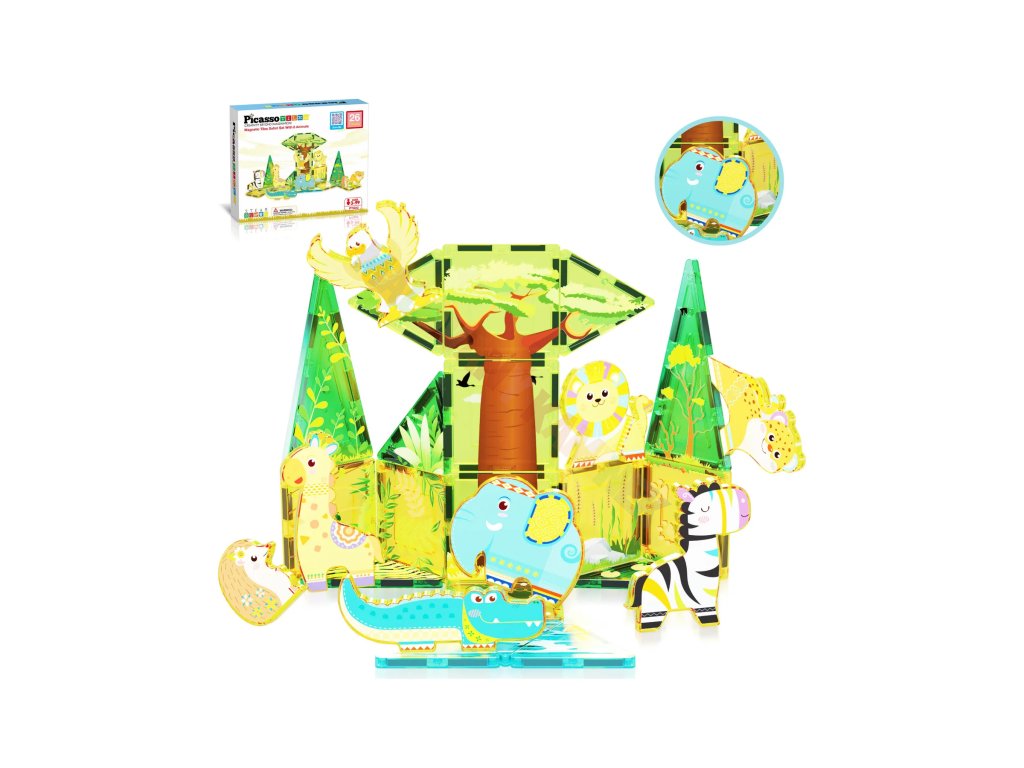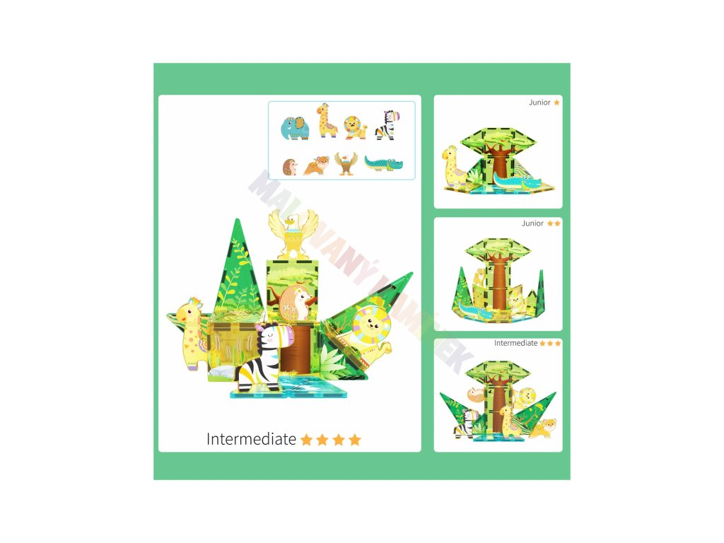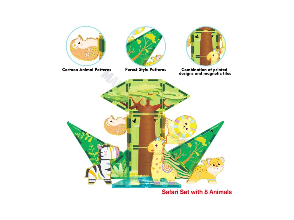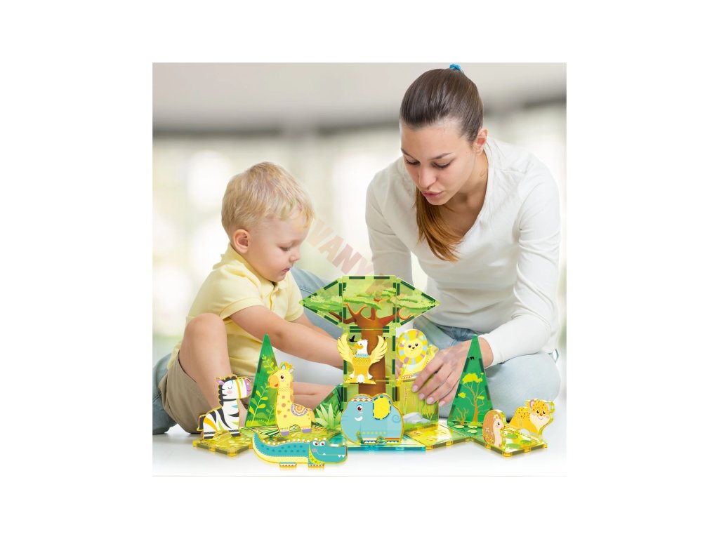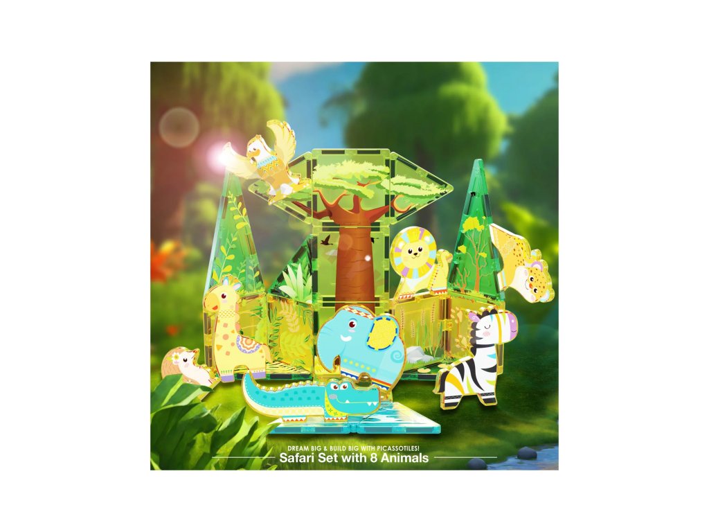 Sada Safari Explorer přináší potištěné magnetické dílky a figurky divokých zvířat, díky nimž si děti mohou postavit vlastní safari plné napětí a objevování. 🦁🐘🦓