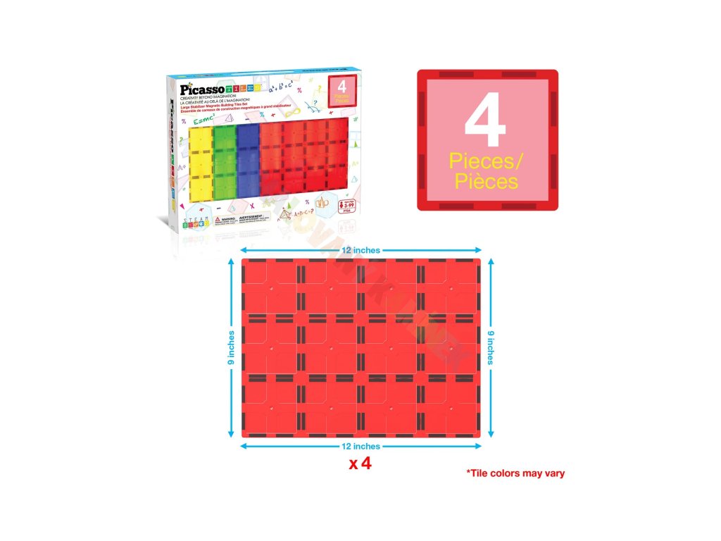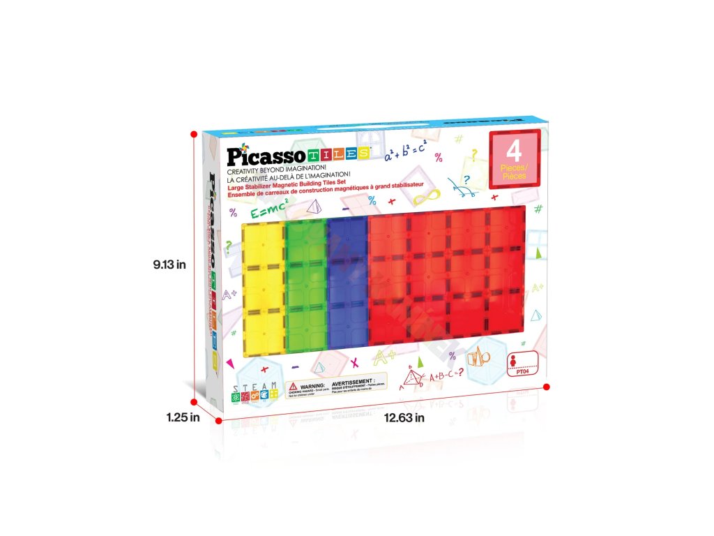 Pečlivě navržená sada čtyř obřích stabilizačních destiček poskytuje pevný a stabilní základ pro stavby z magnetických dlaždic. Každá destička o rozměru 30 × 22 cm (12" × 9") nabízí čtyřnásobek plochy běžné čtvercové dlaždice – celkem odpovídá 48 klasickým kostkám.