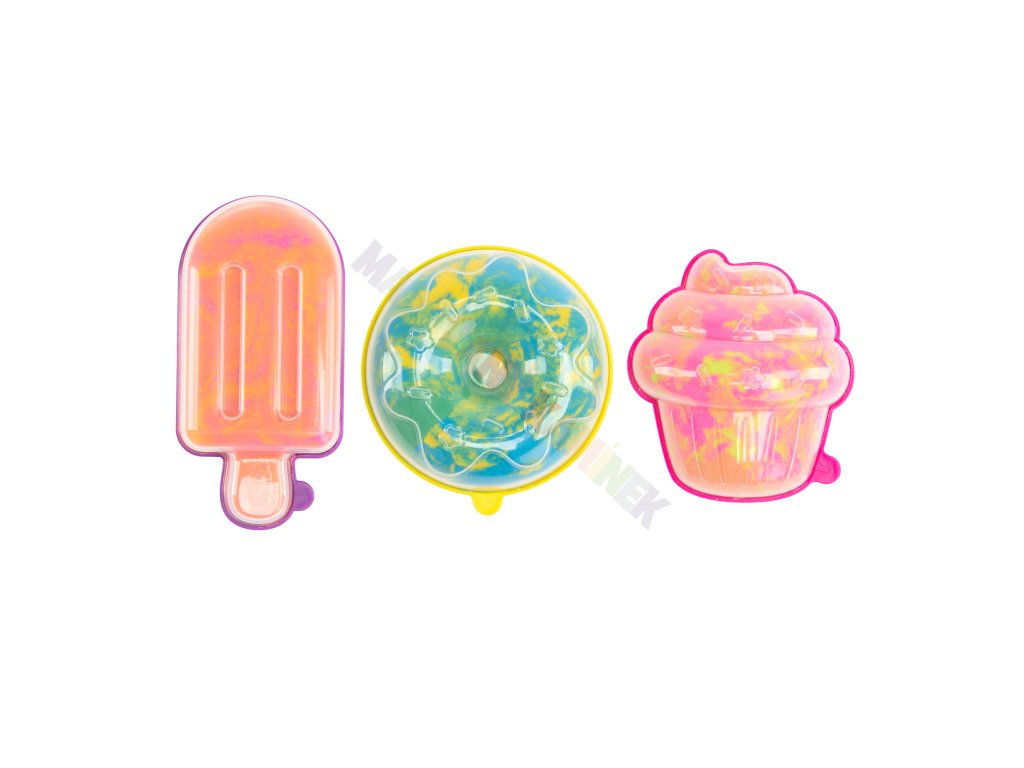 - Obsah balení: 3 uzavíratelné formičky ve tvaru nanuků, koblih a košíčků, 3 barevné směsi Playfoam Sand™