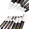 - Posca PC-5M: Středně silný hrot 2,5 mm pro univerzální použití na různých površích.